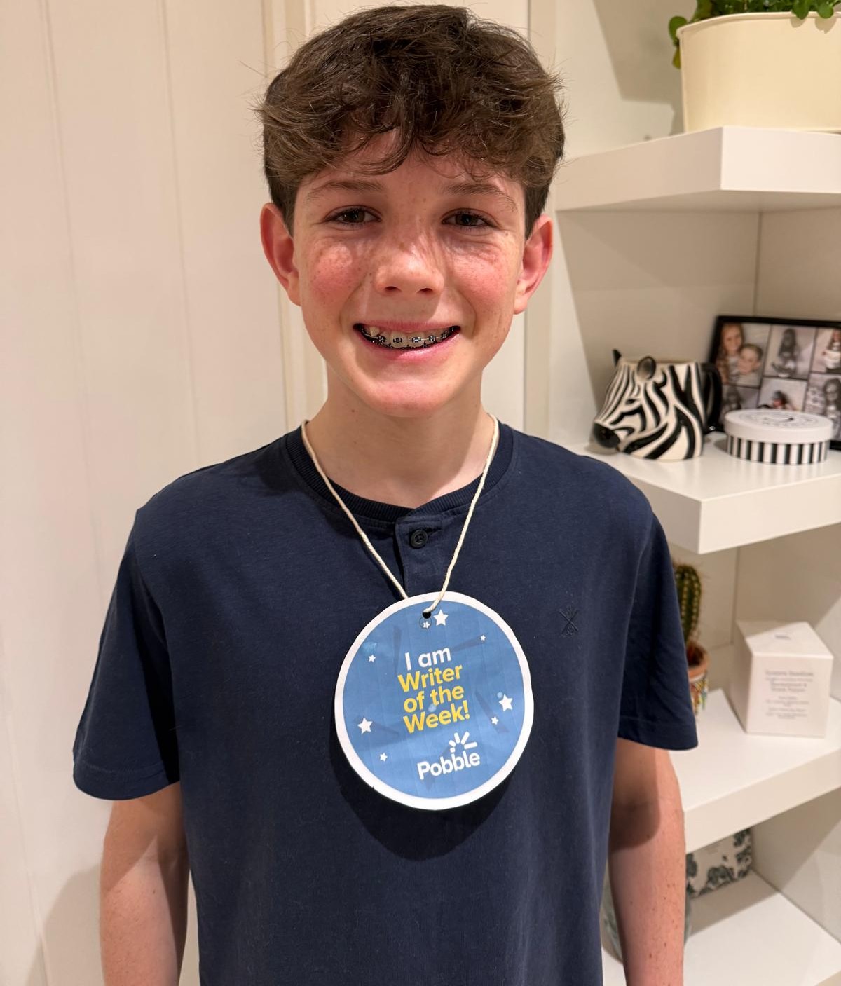 Here's Charlie, from Burgess Hill, proudly winning 'Writer of the Week'! I was really impressed by his word choices—especially "striking," which is such a brilliant adjective to describe his character's face!